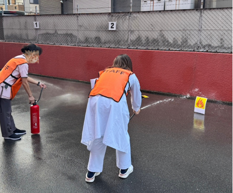 通報や消火、避難誘導、患者役などそれぞれの役割を通じて緊急時の動きを再確認しました。