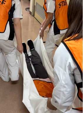 今回は、3階病室を火元と想定し、消火の手順や避難方法、患者さんの安全確保について学びました。
